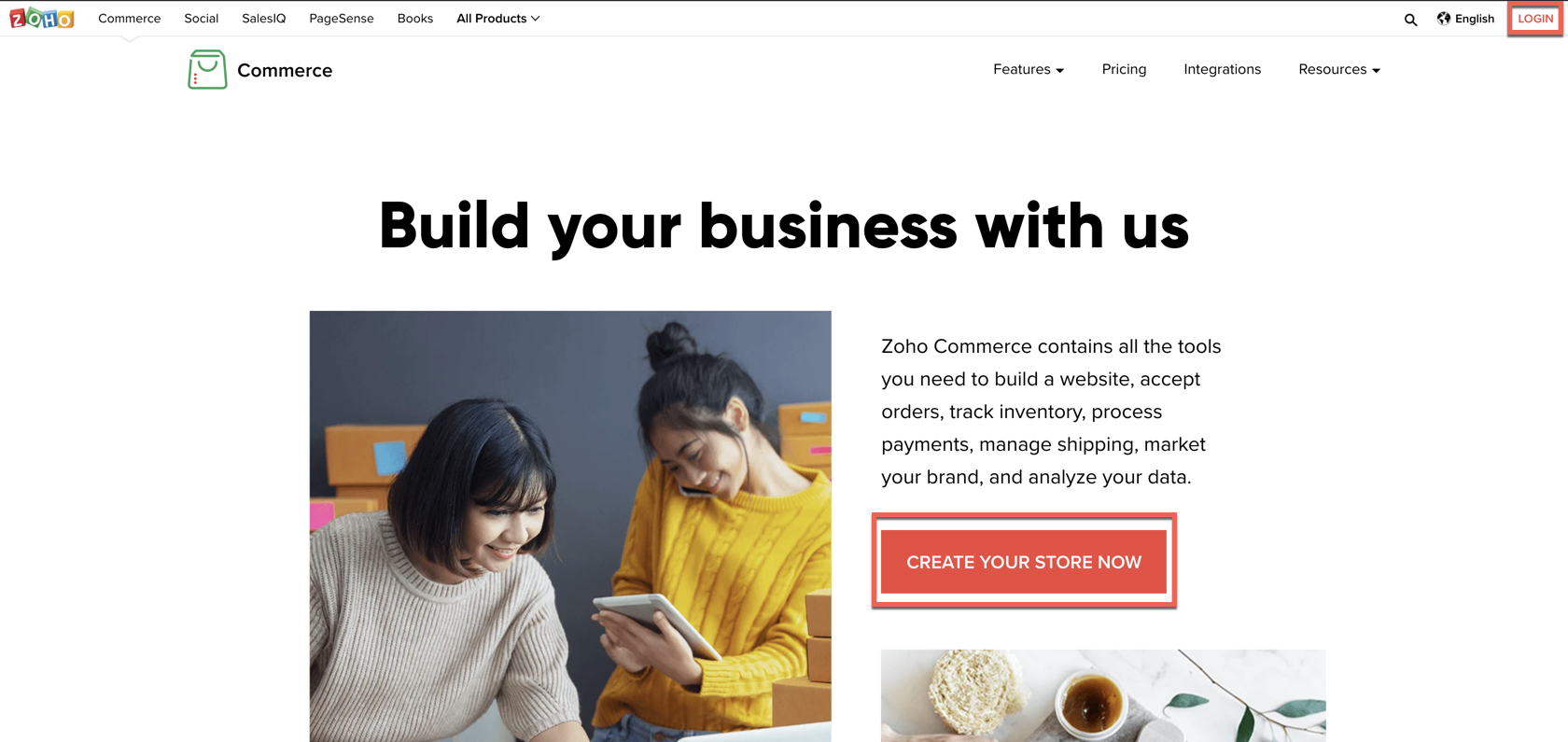If you've already signed up for Zoho Commerce, you can log in to your account. Here’s how: