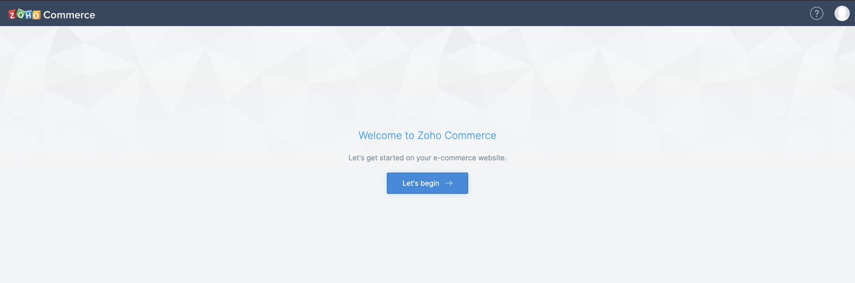 You'll then be redirected to Zoho Commerce. Click Let's begin.