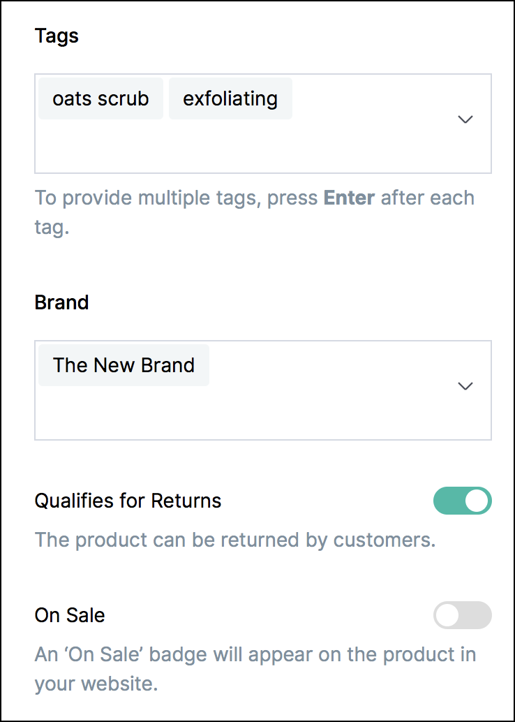 Enable this toggle when you want to display your product with an 'On Sale' badge across it.