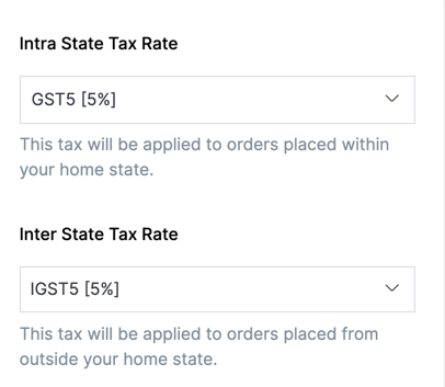 Intra State Taxes: This applies to products that are sold within the home state of the store.