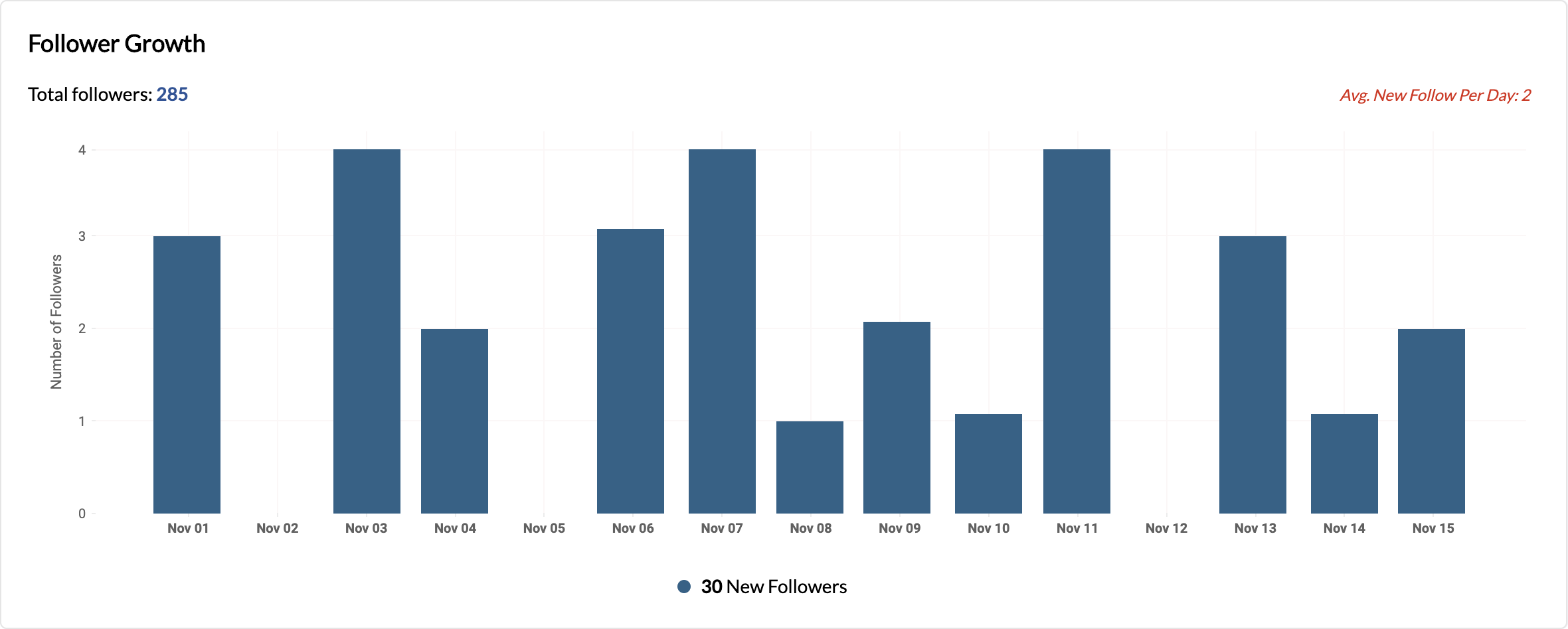 Click on the Audience section and here you can see the card Follower Growth with the statistics for your follower growth over a time period: