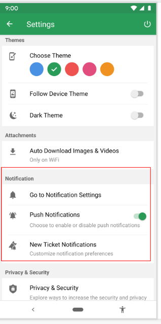 - Go to Settings and enable Push Notifications and then click New Ticket Notifications.