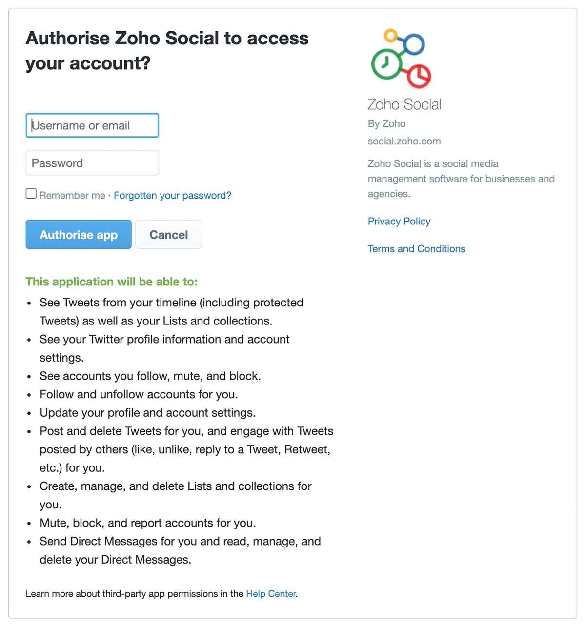 3. Click on the Authorize App button to allow Zoho Social to manage your social channel.
