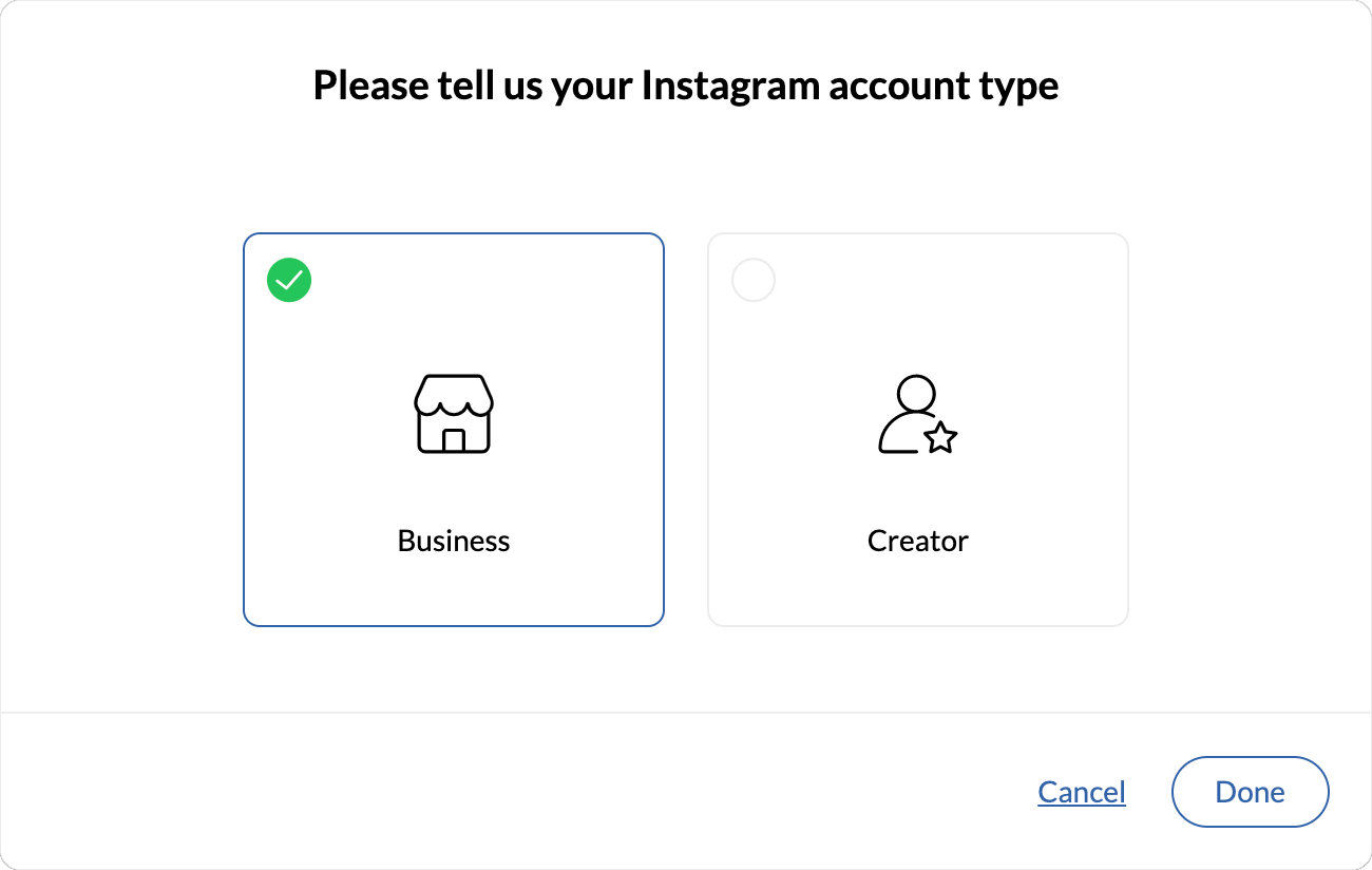 4. Finally, select your Instagram account type as Creator or Business from the consent window and hit Done.