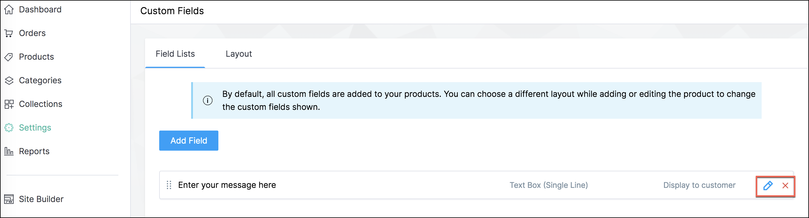 To delete a custom field, hover over the field you want to delete and click the Delete [] icon.