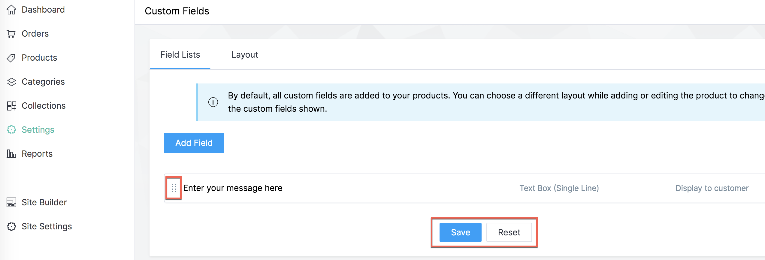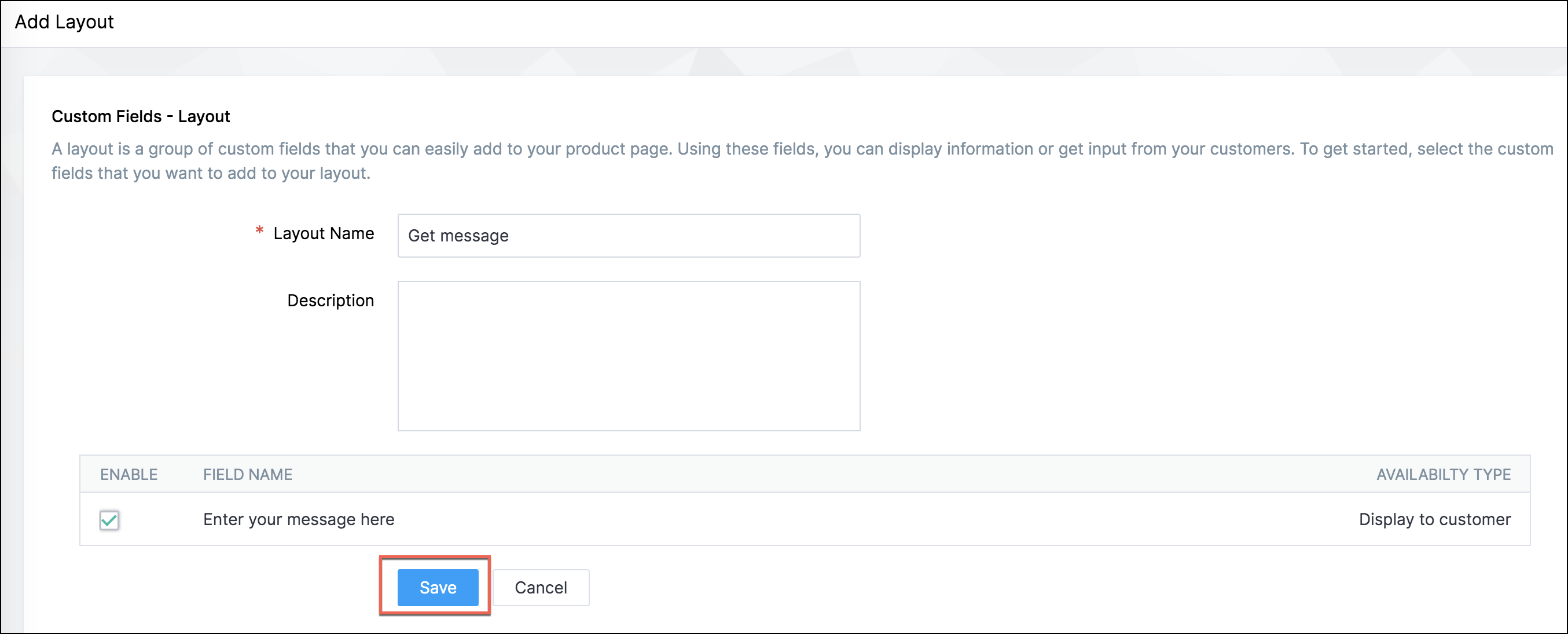 Note: You will not be able to enter any message while adding or editing products if you have chosen the field to be a Get input field.