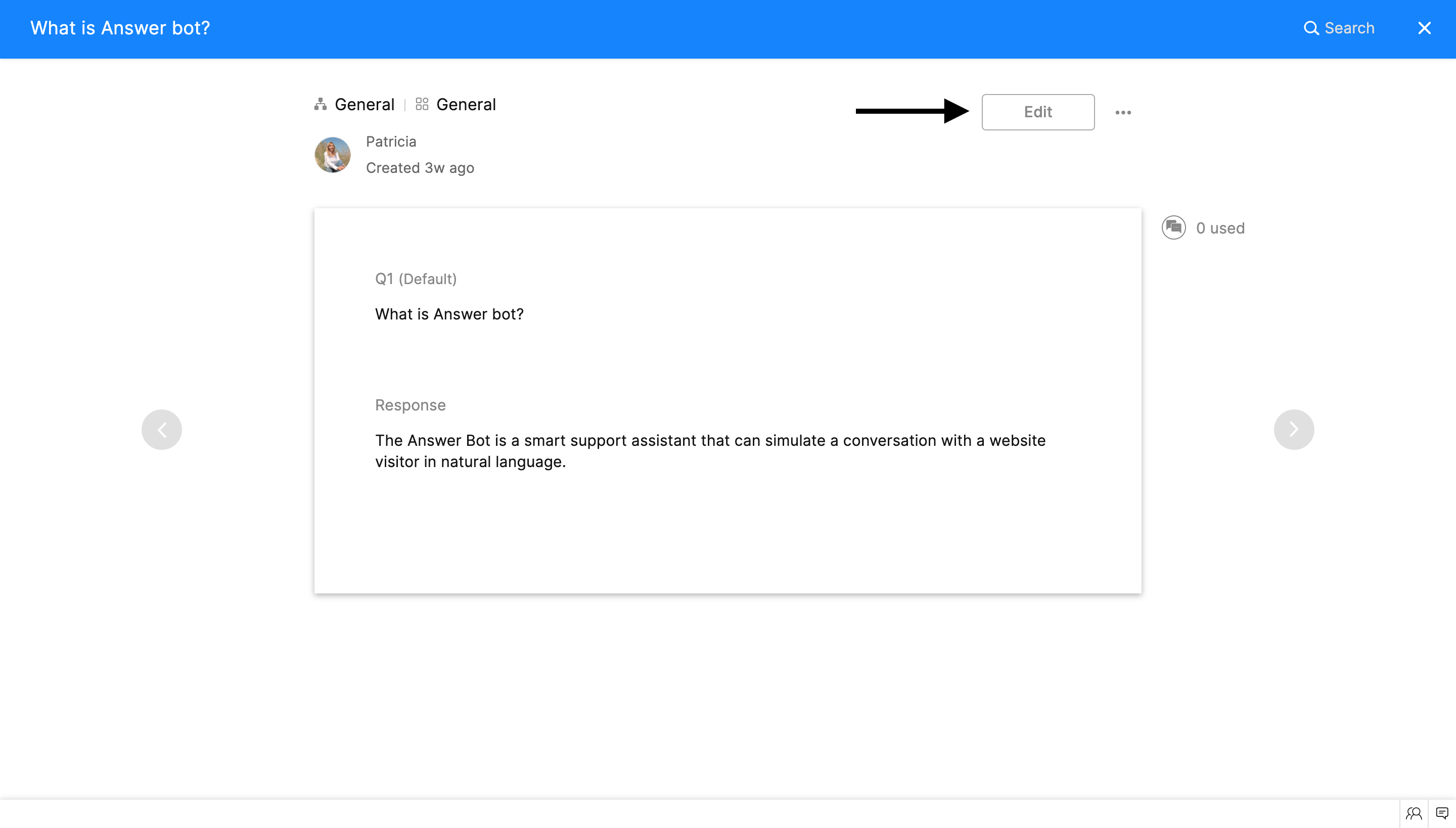 - In the FAQ dashboard, click on the article that you want to edit and then click on Edit.