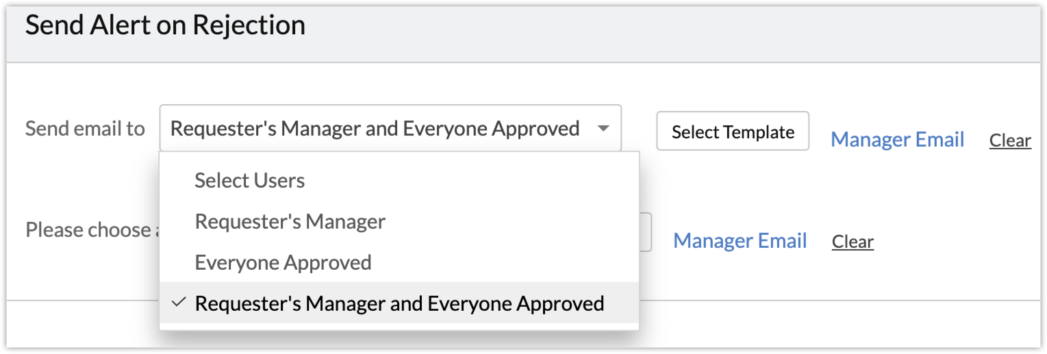 - Everyone who approves: If there are multiple approvers, all the approvers will receive an email notification on rejection.