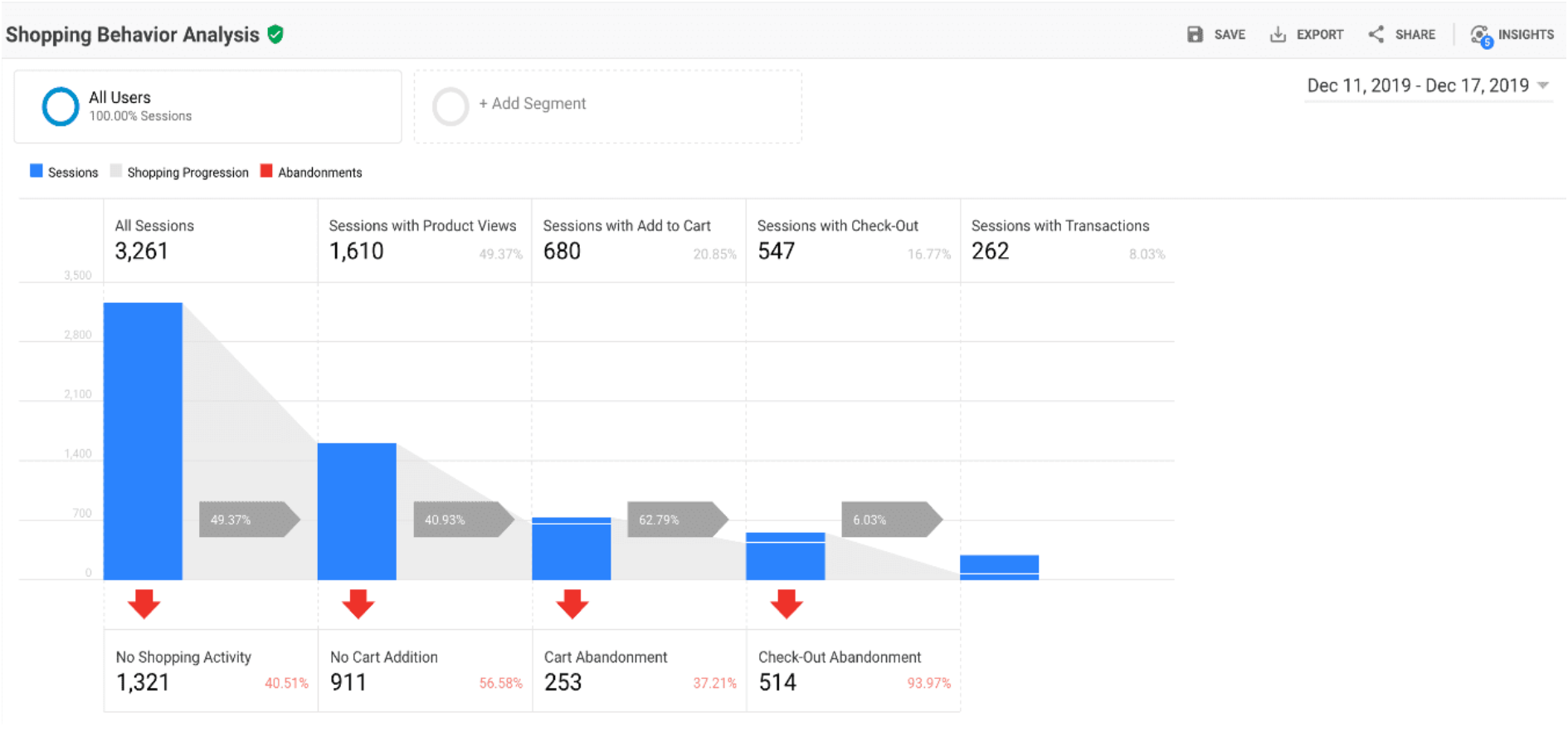 This data can give you an insight into which stage exactly you might be losing customers and take appropriate action.