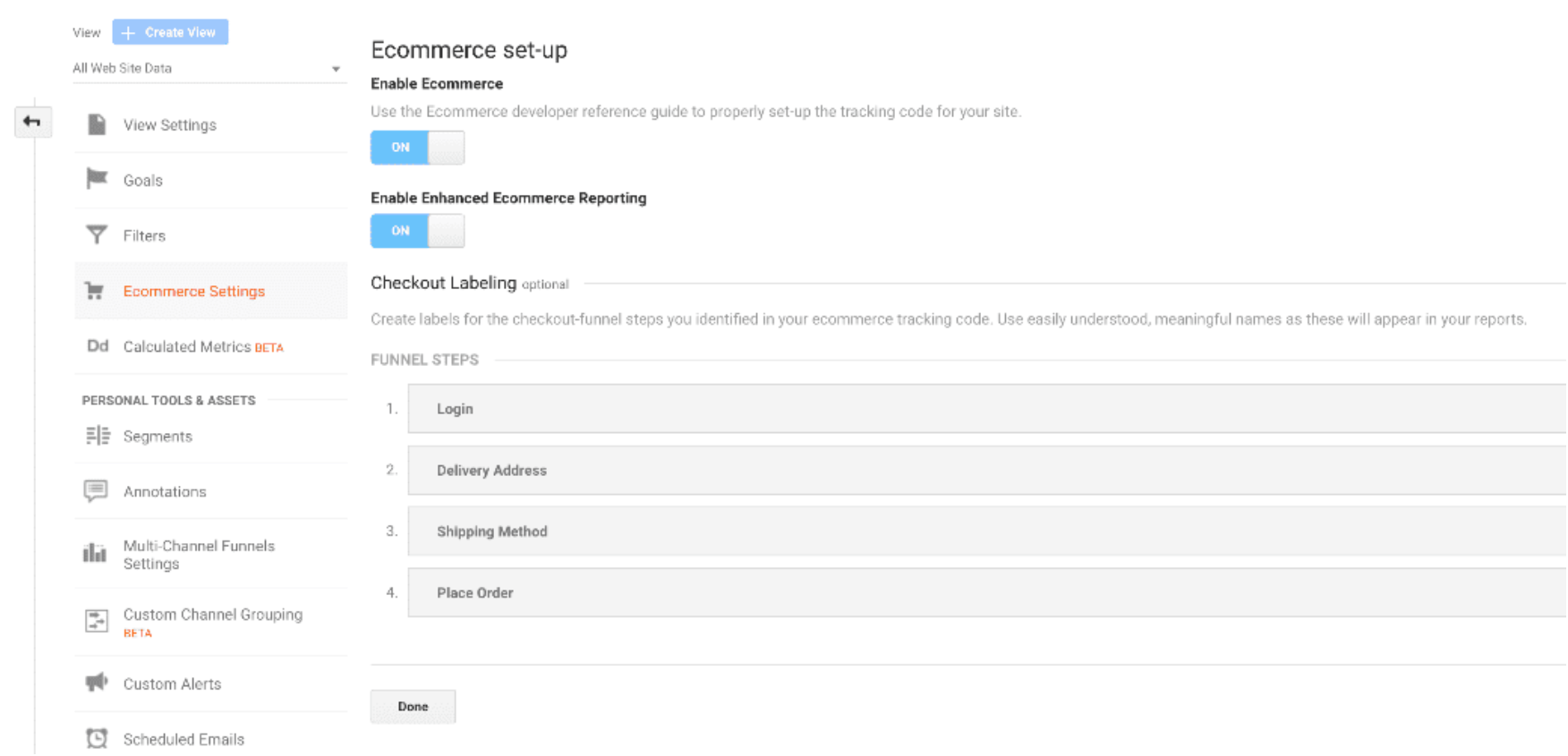 Ensure that the Enable Ecommerce and Enable Enhanced Ecommerce Reporting toggles are turned on.