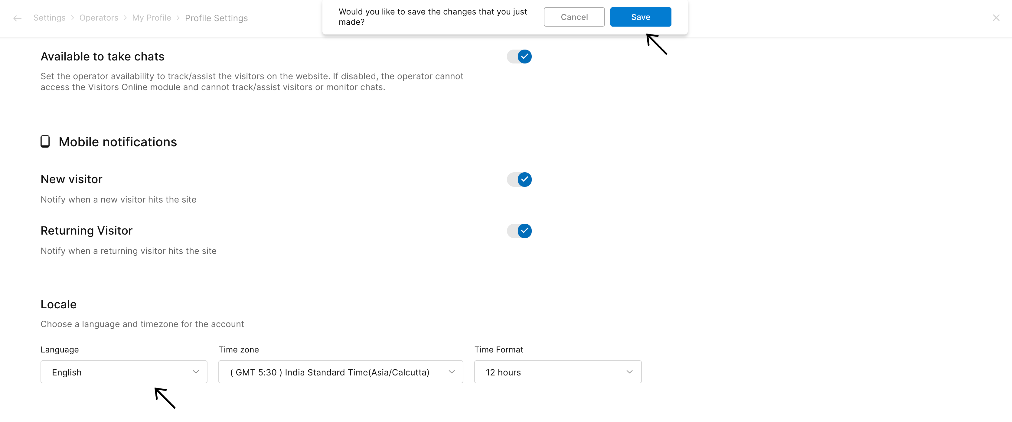- In the Locale section, choose the language you prefer from the drop down, and click Save.