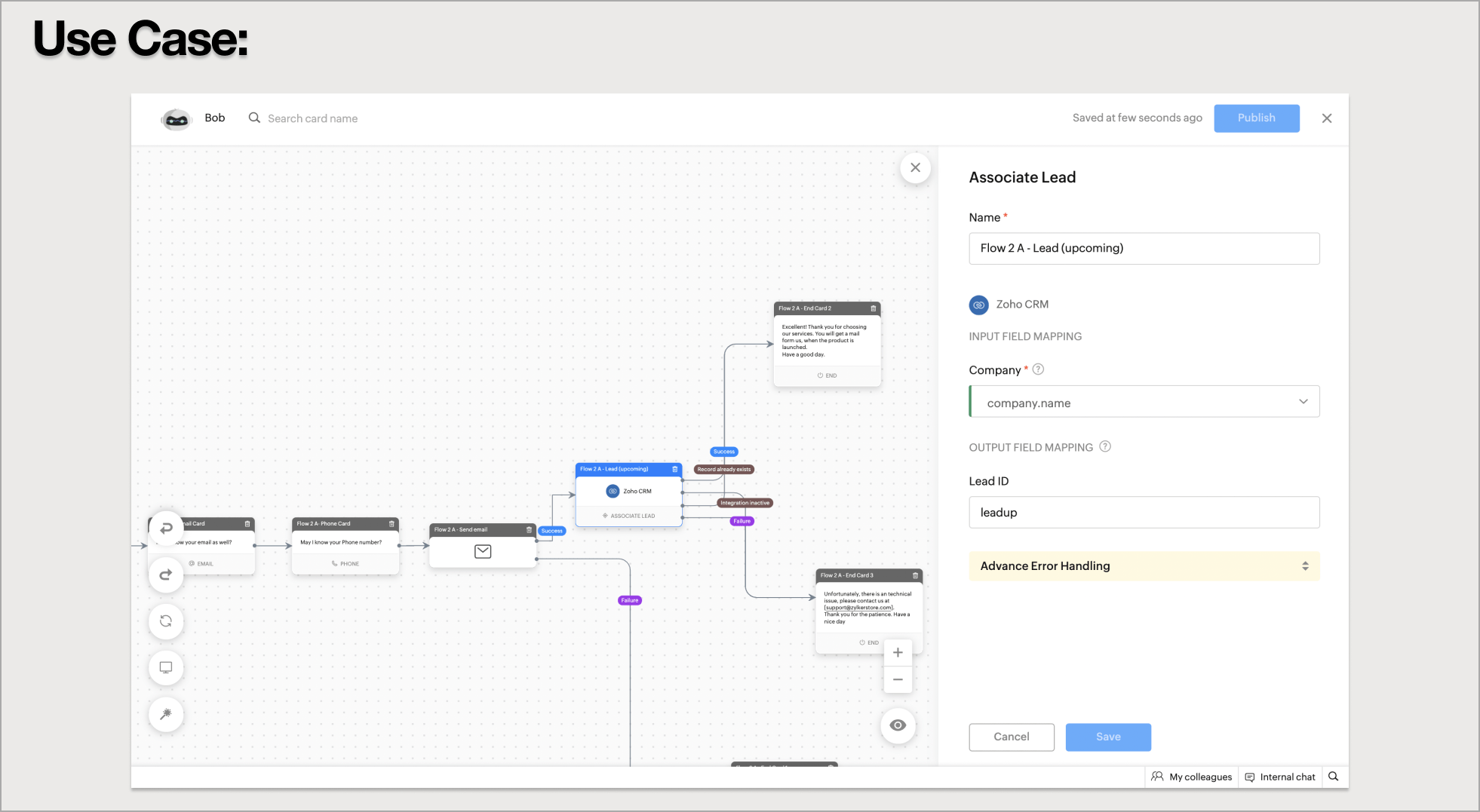 - Inside the Advance Error Handling section, you can handle cases like when the integration is inactive or when the CRM record already exists.
