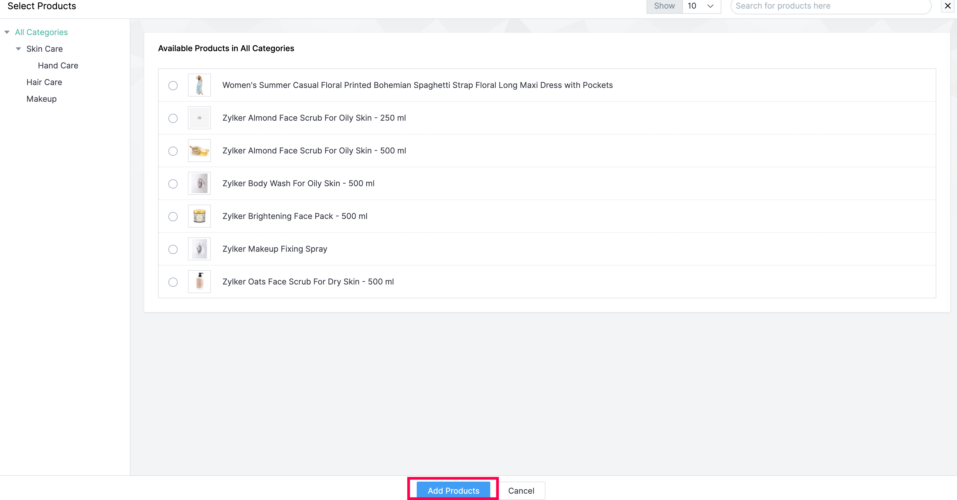 Once you are done selecting the products, click Add Products to add these products to your collection.