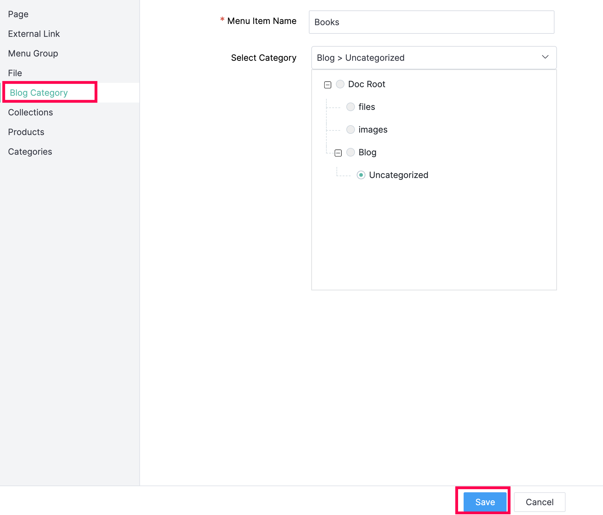 Select from the available categories. Select Uncategorized if you don't want your blog to be categorized under any menu.