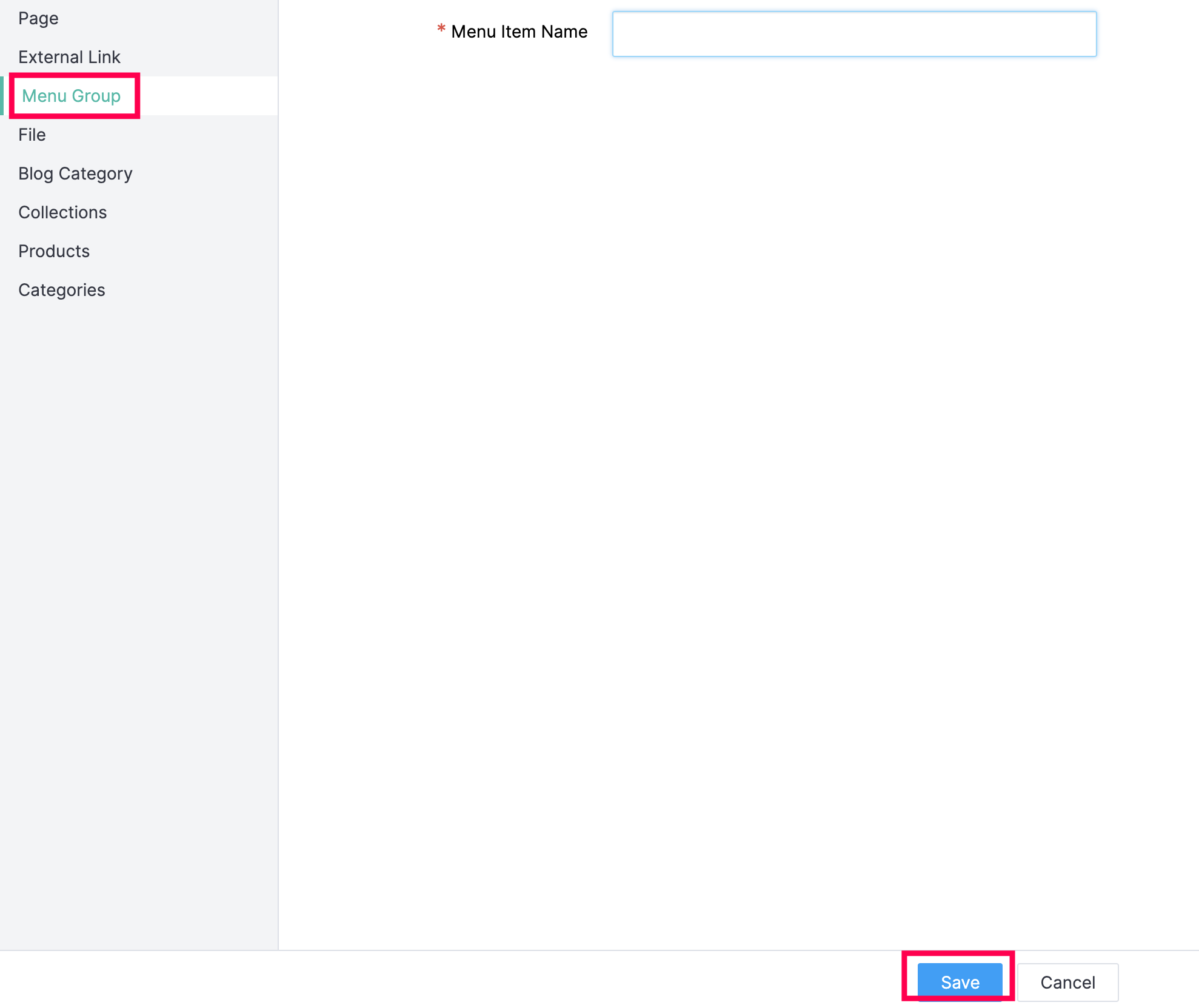 Before you create a menu item for a page, collection, category, or blog, make sure you create them in your store first. Only then will they reflect on the Menu page.