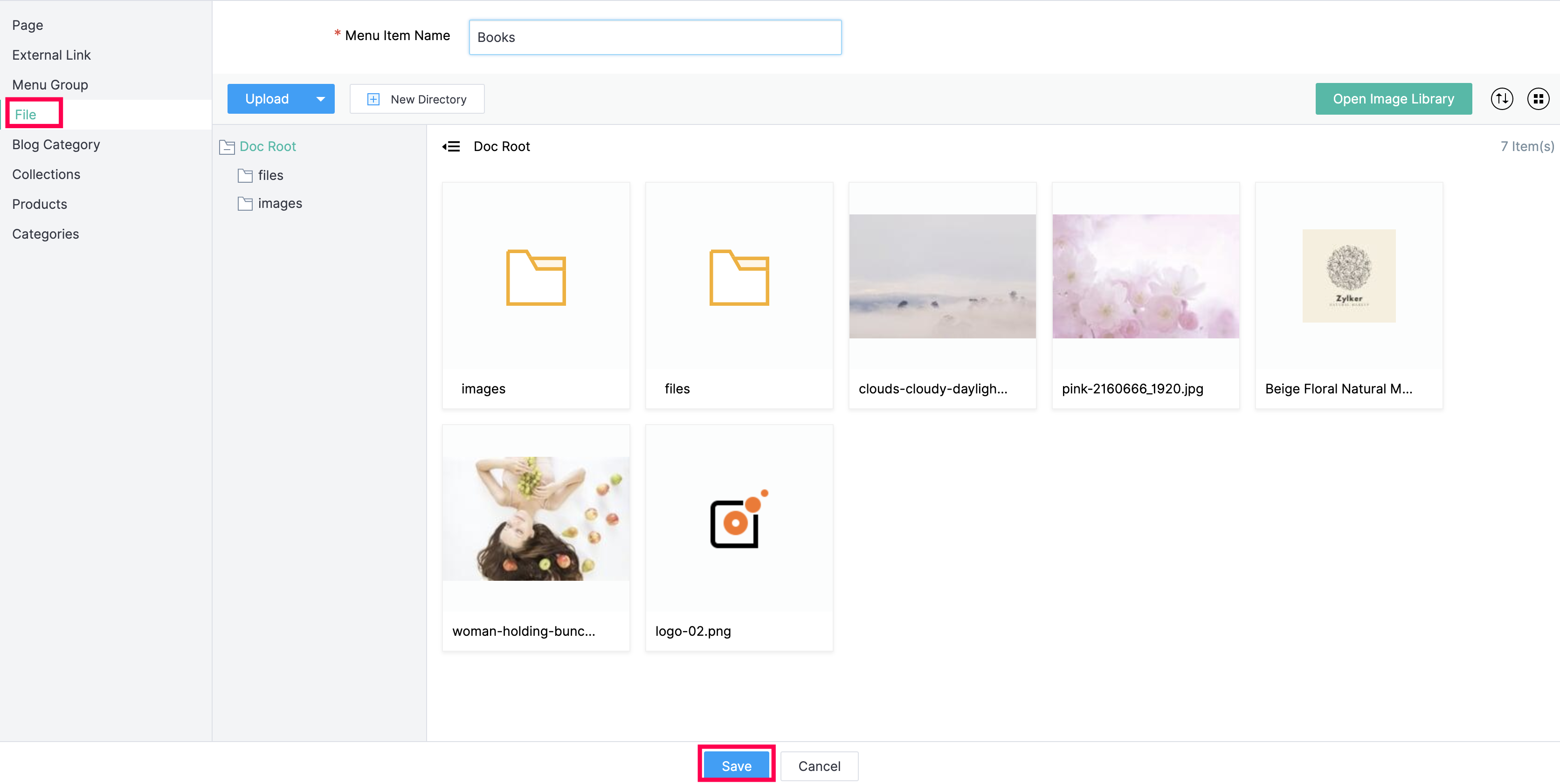 Click New Directory to create a new folder for the images you wish to add to your site.