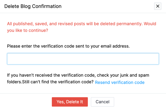 5. Click Delete Blog to delete all your posts permanently from your website.
