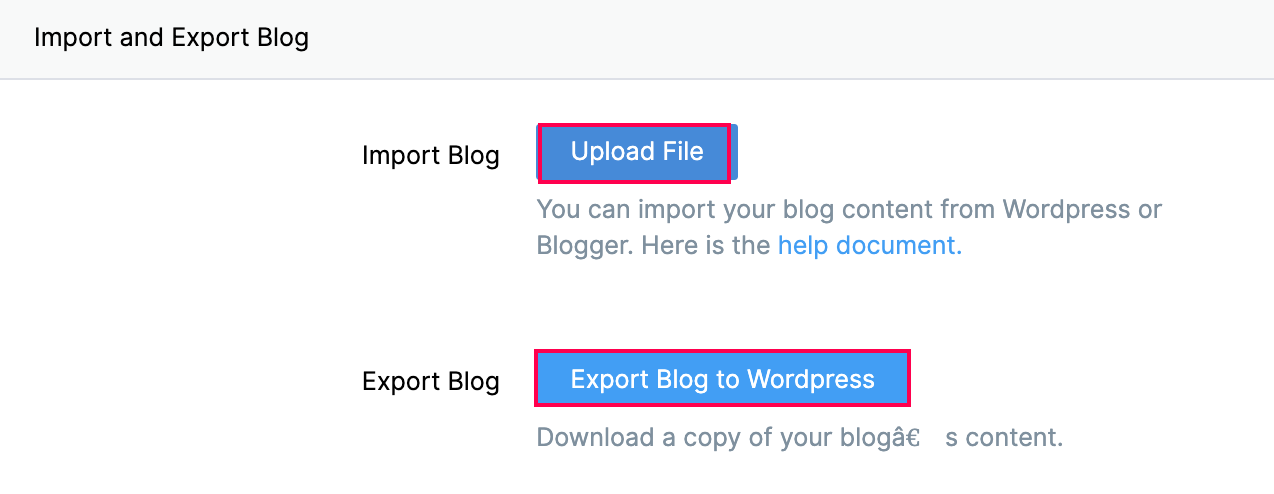 - Click Upload File to import the content of your blog from Wordpress or Blogger.