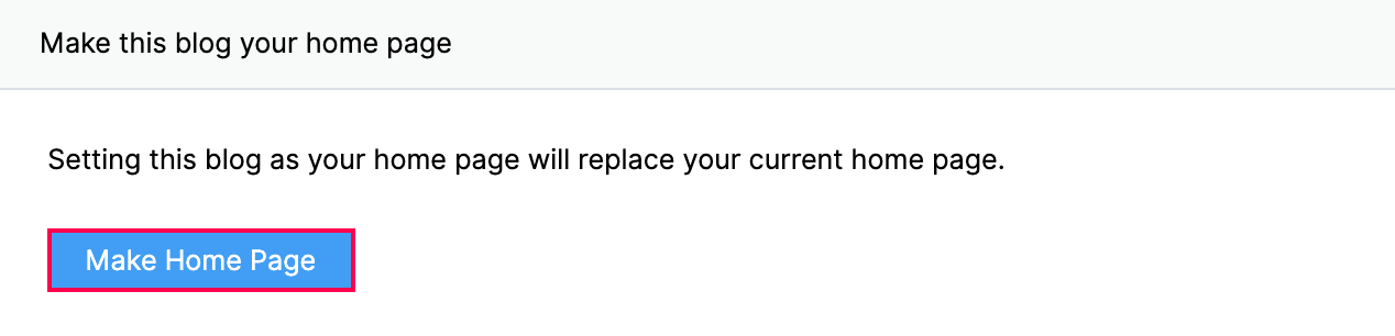 4. Click Make Home Page to make a specific blog your current homepage. This will replace your existing home page.