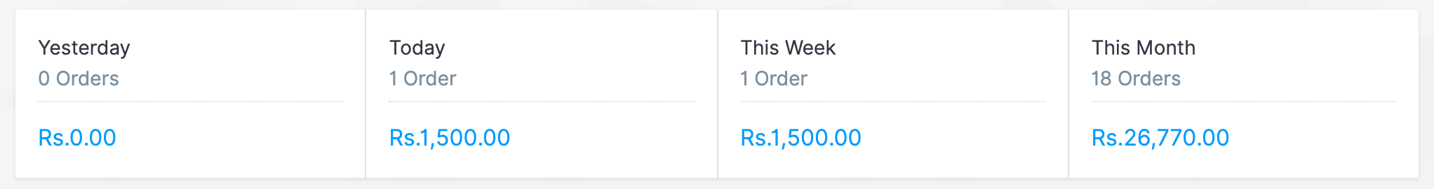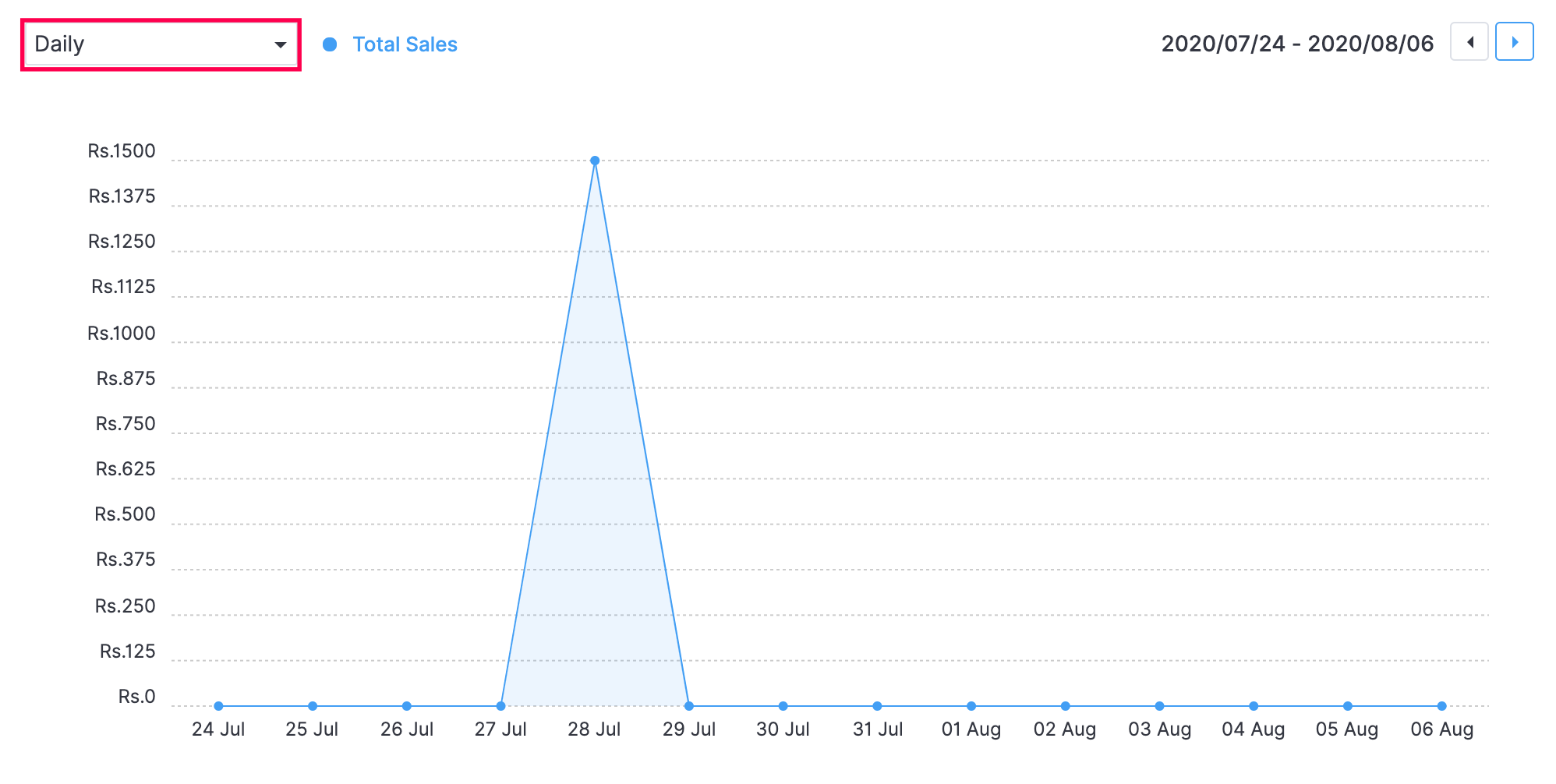 Click the dropdown list to view your total sales by orders placed Daily, Weekly, Monthly, and Yearly.