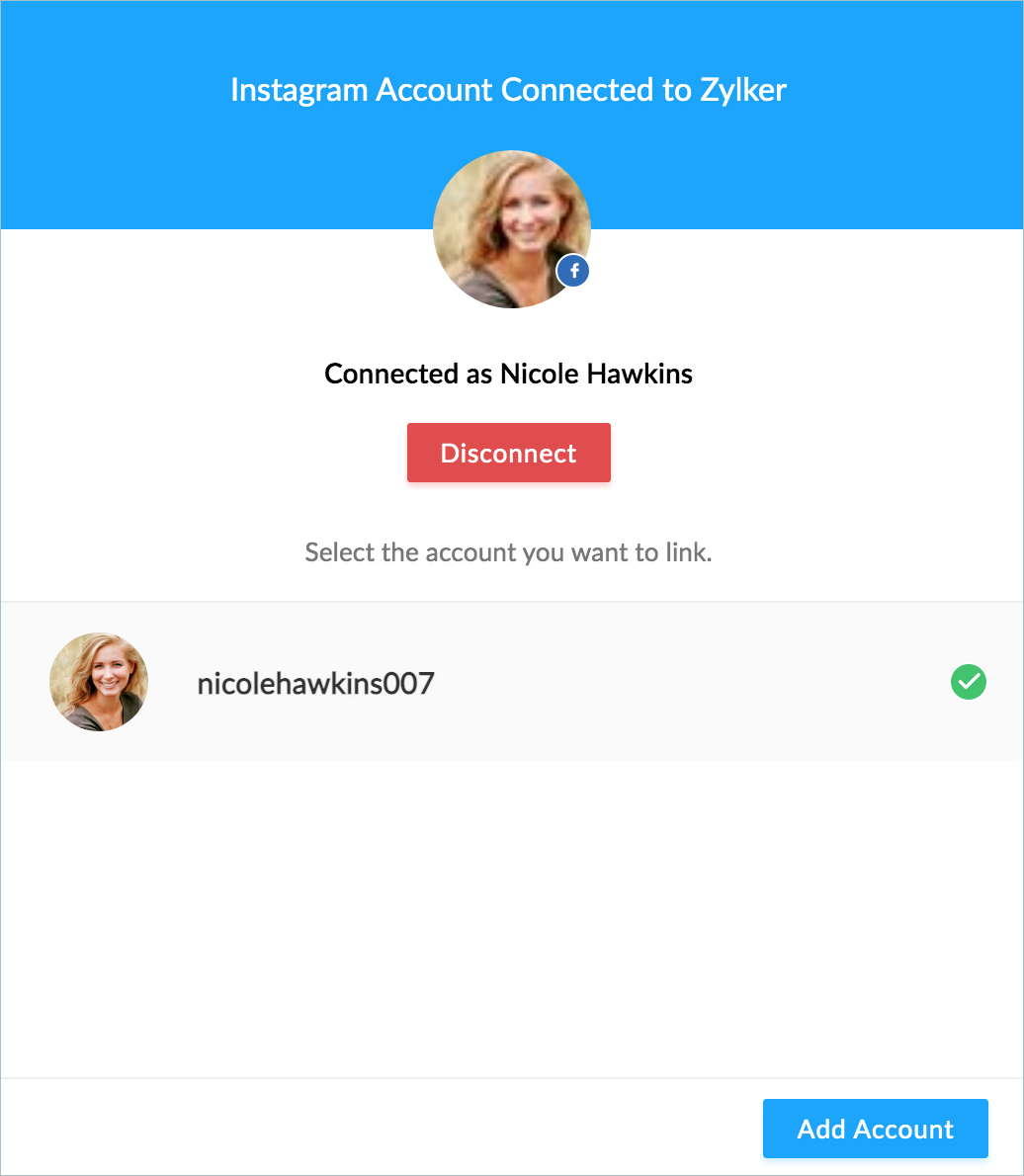 The Instagram account is now linked to your brand. The individual detail screen of your Instagram page appears.