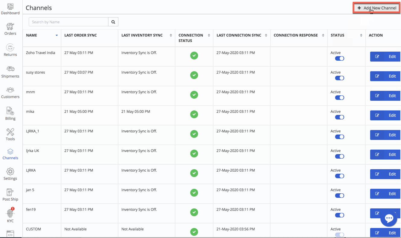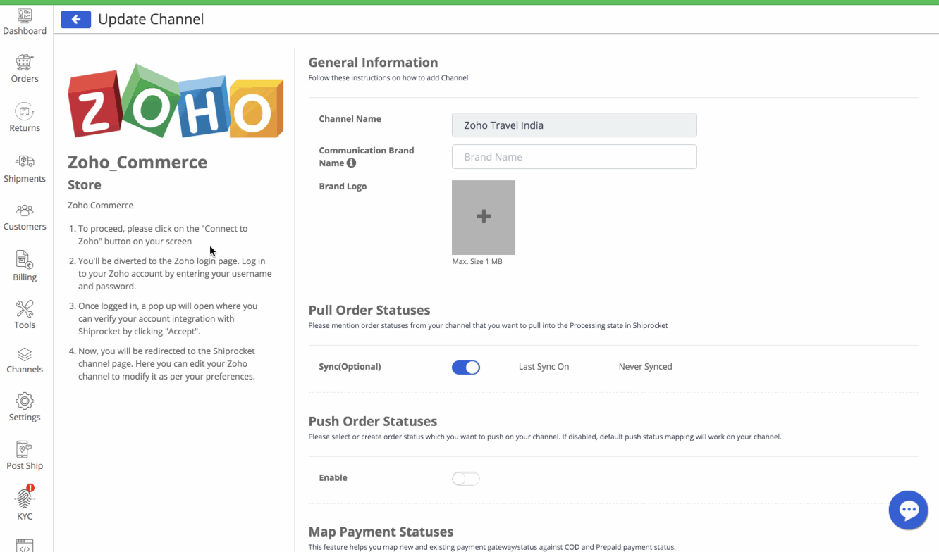 10. Shiprocket will fetch the Channel information. Customers can change the channel settings here.