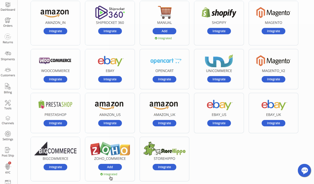 All you need is one account with Shiprocket to help you choose from any of their supported partners. Zoho Commerce has extended our integrations with Shiprocket to help our customers have a seamless ecommerce journey.