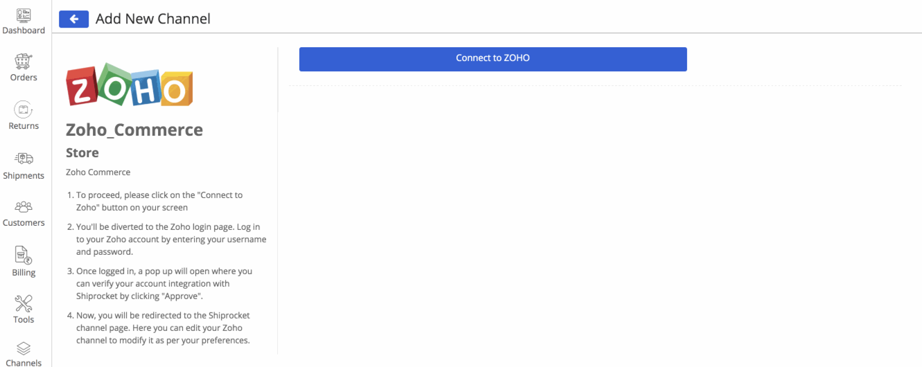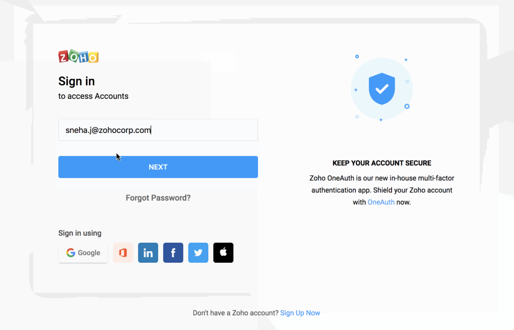 8. After connecting to Zoho, use your credentials to log in to your account.