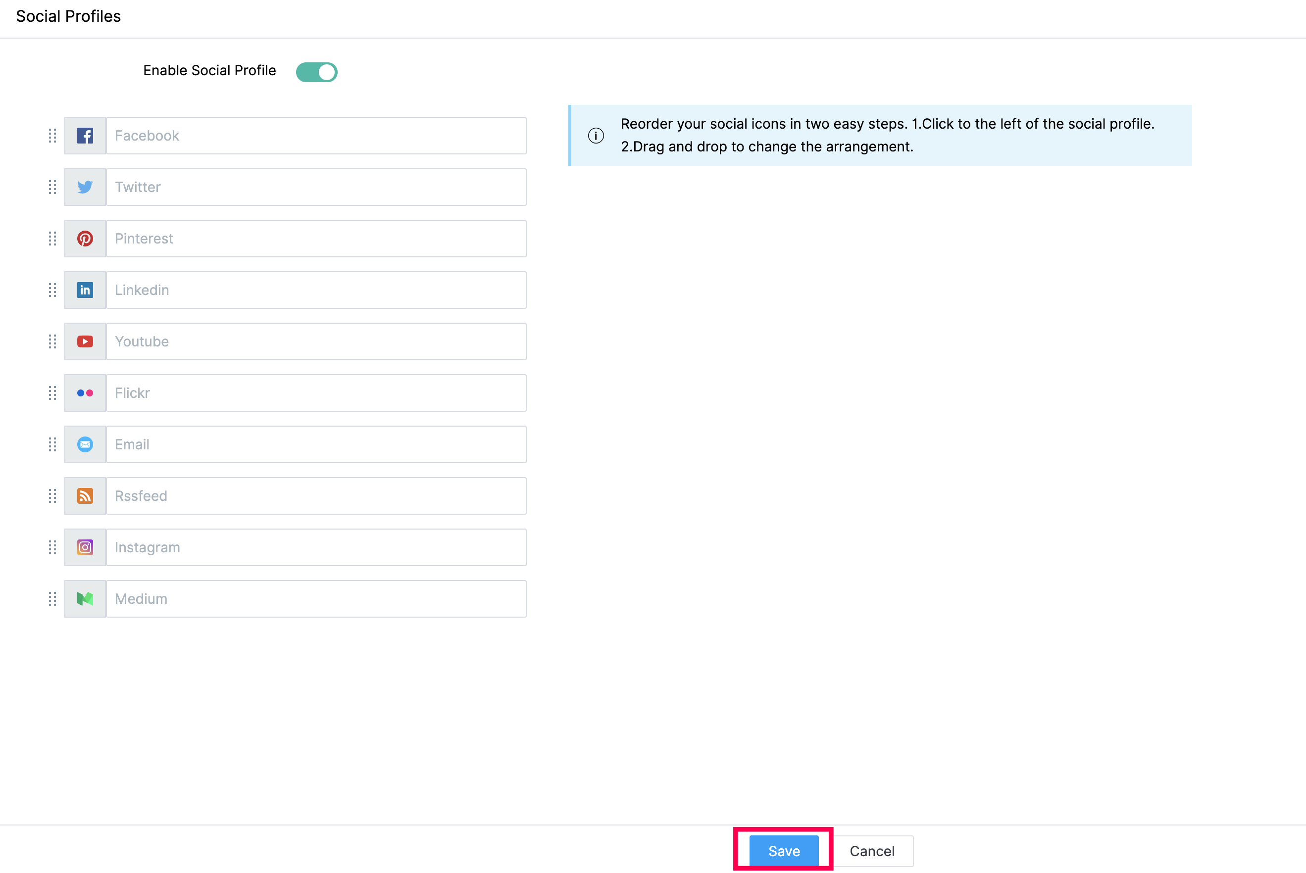 This feature enables you to adjust and reorganize the social media network options in your store. Go to Settings > Social Share under Configure Settings. Click the Social Share toggle to activate this feature. Click the Style drop-down to choose ...
