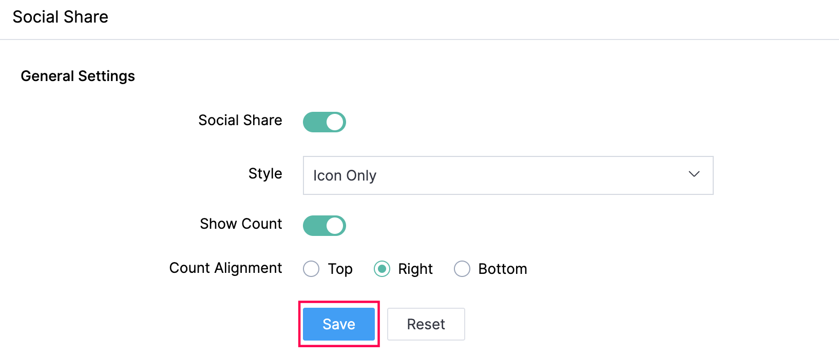Choose from the Top, Right, or Bottom radio buttons. Count Alignment decides the placement of the social media icons in your store.