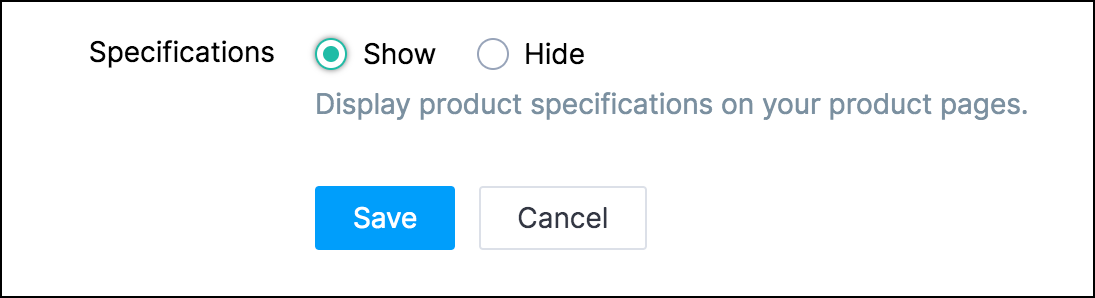 Specifications module will help you to add product specifications that will be displayed in a table format. You can create specification sets for different products and also categorize your specification fields. These specifications are displayed neatly on your product page, in a tab next to Product Details.