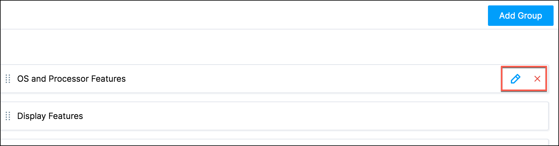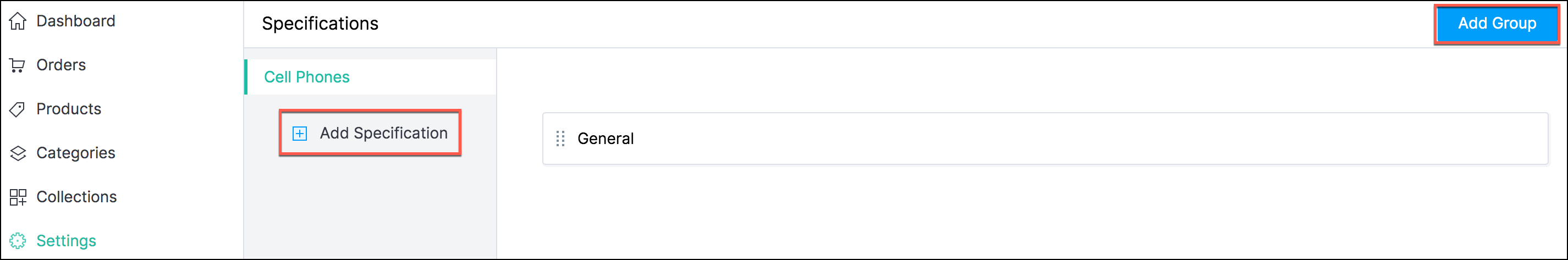 Once you've created a group, click Add Group to add more groups or Add Specification to add a new specification set.