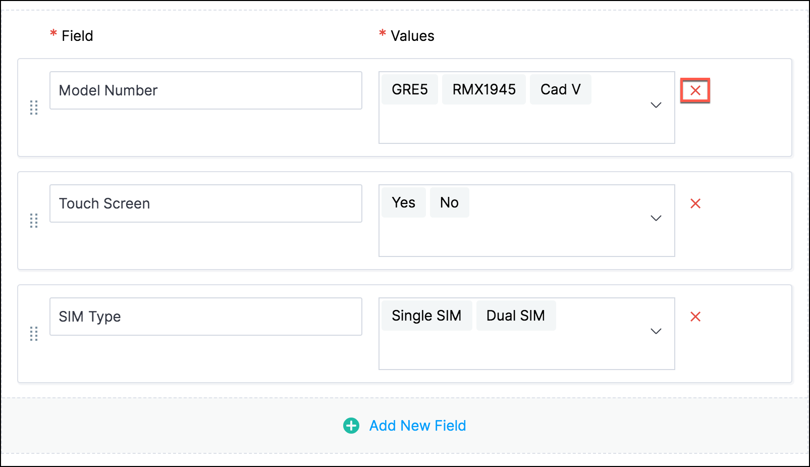 Enter a Group Name. You can classify your specifications set according to different groups. Enter the Field and Values below. Click Add New Field for including new fields.