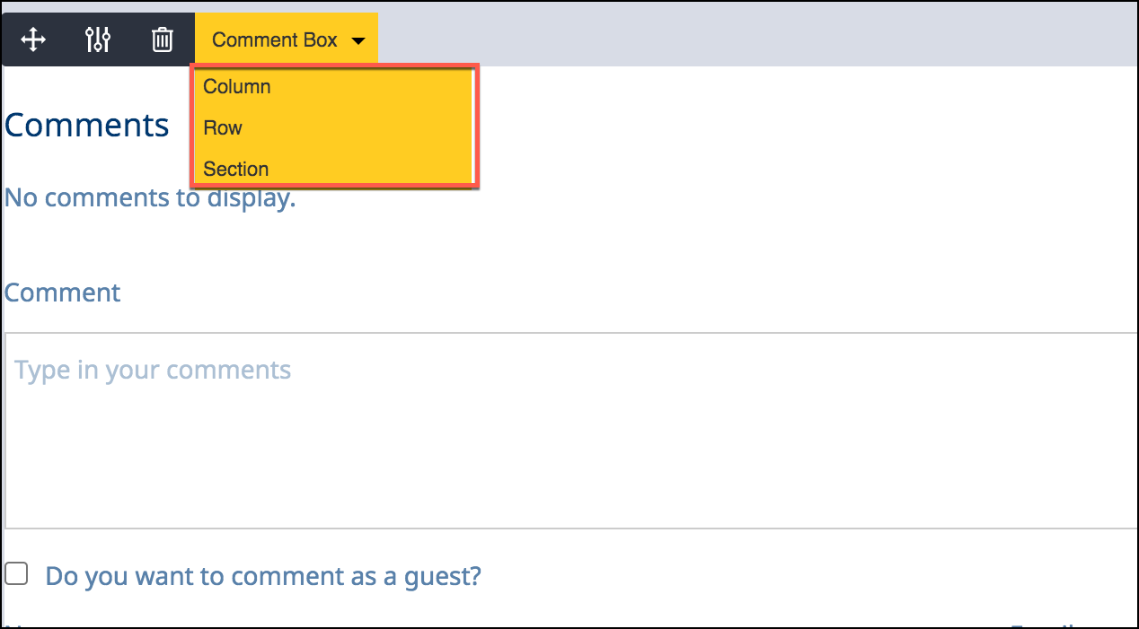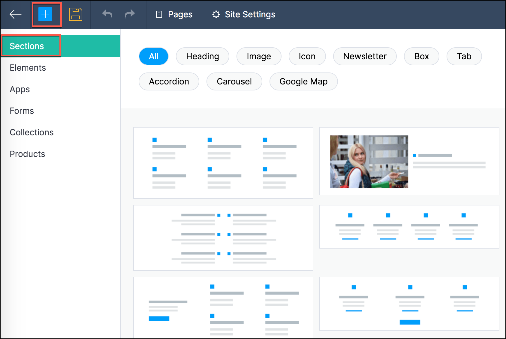 Sections are created by adding elements to your page. All you need to do is drag and drop elements from the content tray to the desired area on your page.