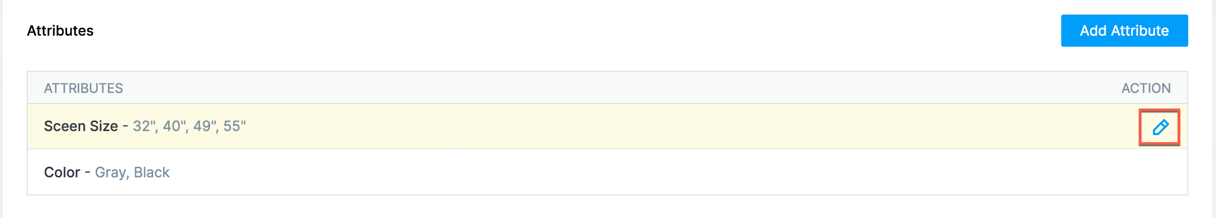 Otherwise, hover over the attribute or variant and click the Edit [] icon.