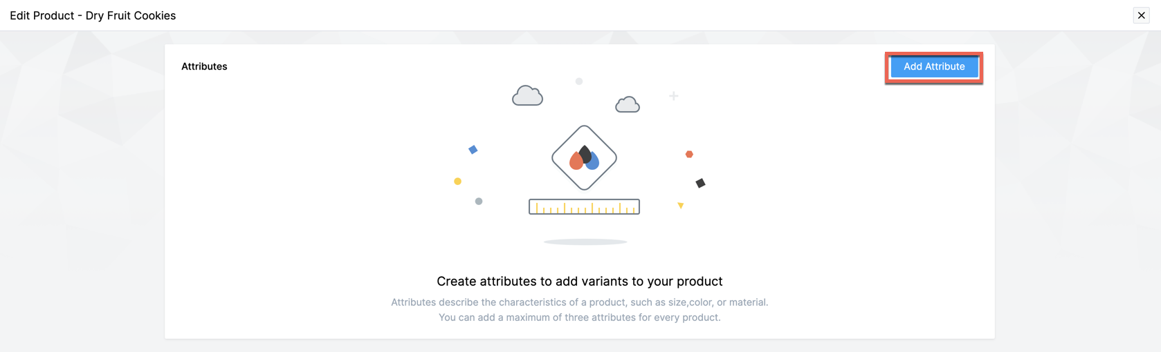 Click Add Attribute if no variants or attributes have been created.