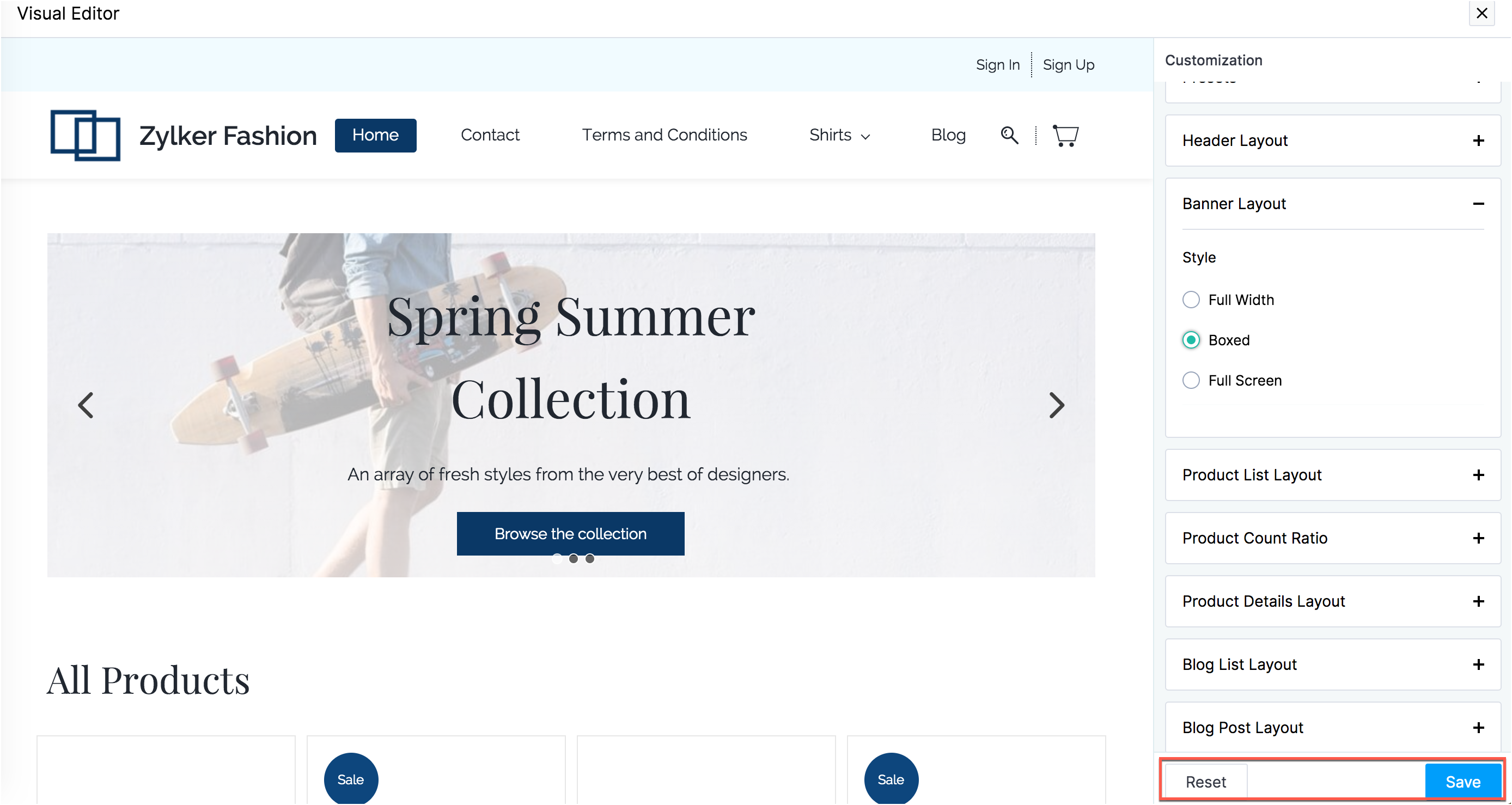 Style your template just the way you like. You can make modifications to properties like Preset color, Header layout, and Banner layout without having to use complex code. Simply open the visual editor and select the desired option.