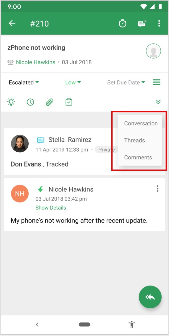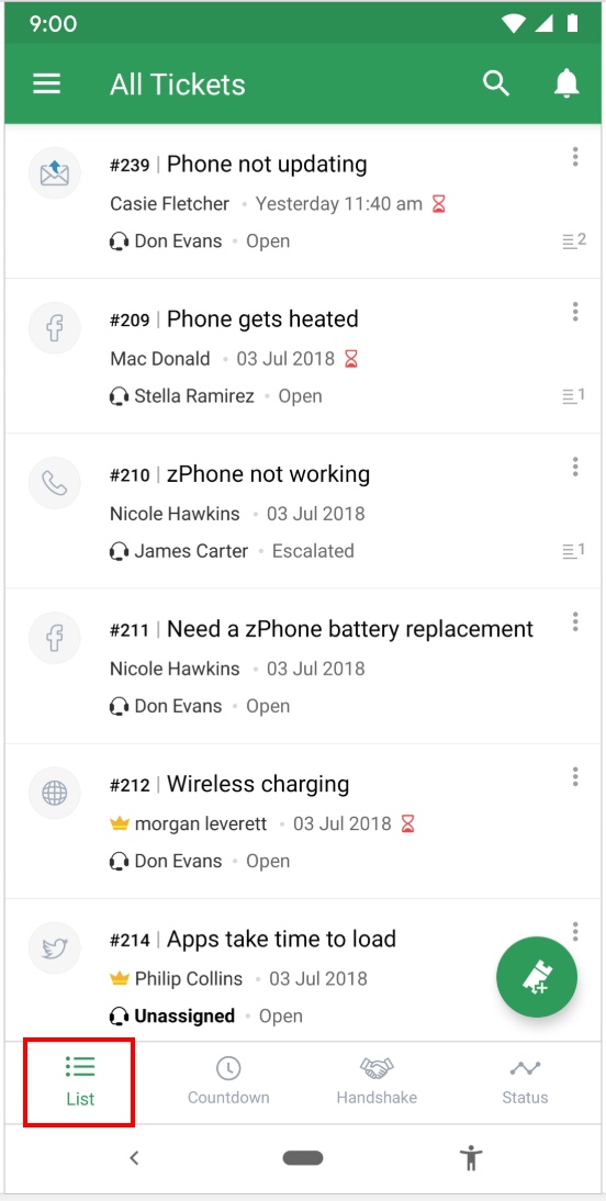 In List mode, you can view the support tickets one below the other. Tickets in this mode will automatically move to the top of the list, so you can stay updated without having to hit the refresh button.