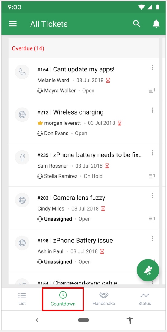 The Countdown mode help you see which tickets need your attention and prioritize appropriately. It also helps you identify and anticipate peak times as well as quickly close tickets that are about to become overdue. The countdown ticket columns are dynamic—that is, a ticket will move from one column to another based on ticket submission time.